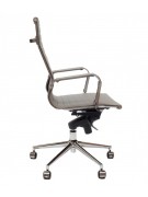 Silla Bishop Alta Gris Gerencial o reunión. Respaldo alto, silla giratoria con estructura de acero cromado y tapiz de poliuretano. Mecanismo multifuncional con regulación de altura e inclinación.